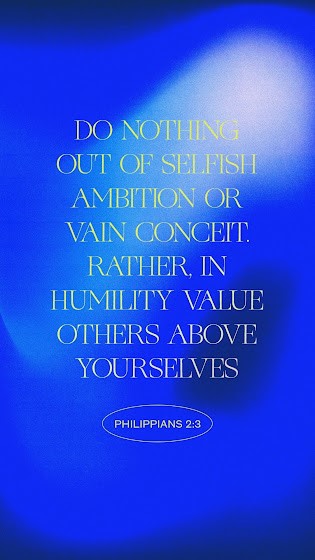 Don’t be selfish, but rather be humble, putting others first. Yes, it’s okay to take care of our own interests and needs, such as work, taking care of our family, entertainment, hobbies, etc. But it’s important we also take care of the interests and needs of others.