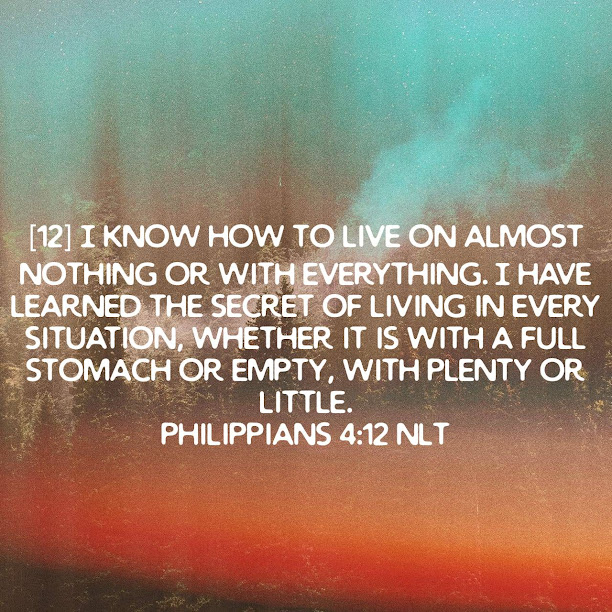 “I know what it is to be in need, and I know what it is to have plenty. I have learned the secret of being content in any and every situation, whether well-fed or hungry, whether living in plenty or in want.”